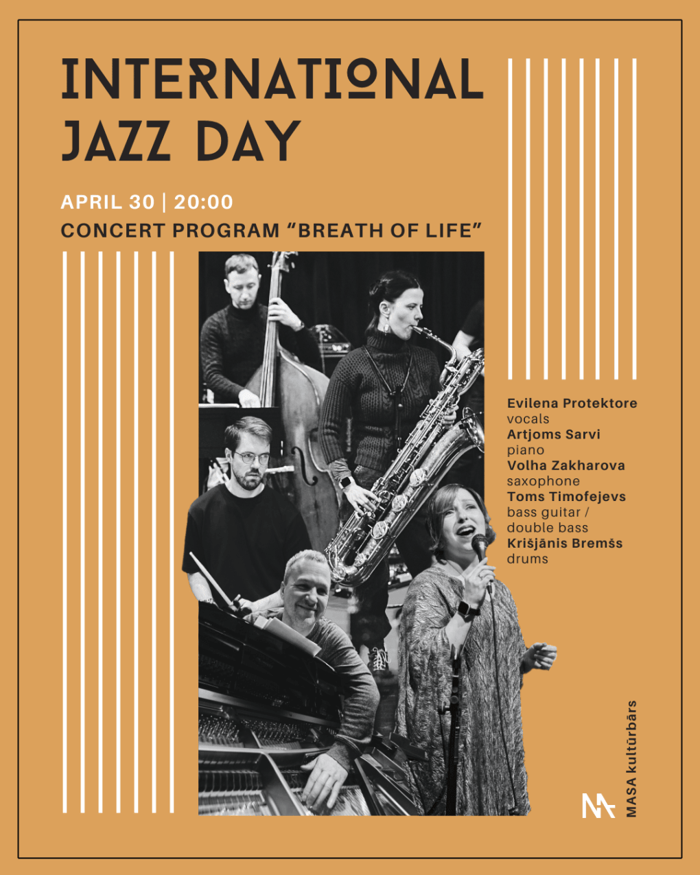 April 30 is celebrated worldwide as International Jazz Day – a moment to recognize the power of jazz to unite, inspire, and reflect. On this day, you’re invited to MASA for a special concert by Evilena Protektore Quintet, presenting their new program “Breath of Life”.