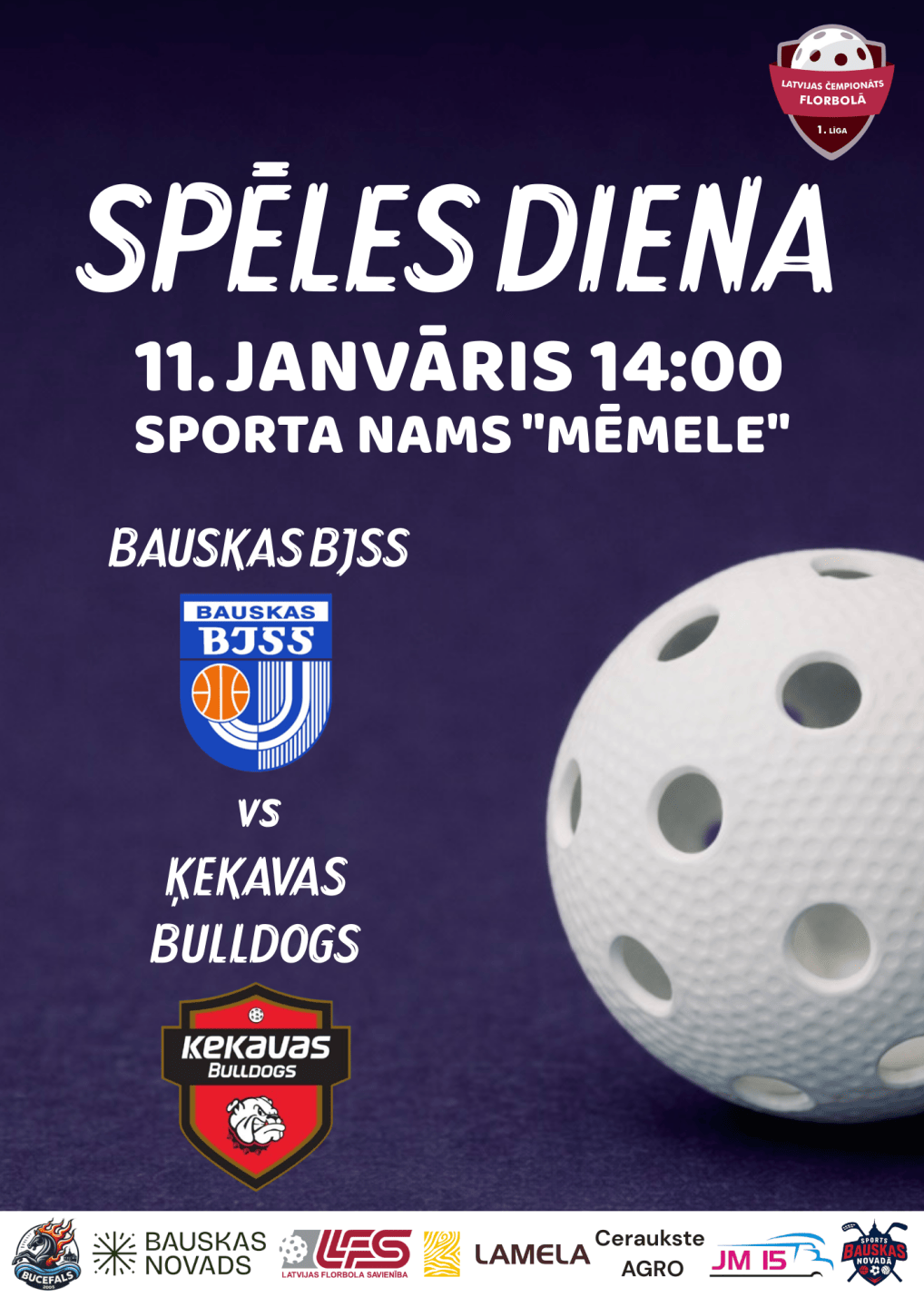 Event "Latvijas čempionāts florbolā 1.līgā: Bauskas BJSS - Ķekavas Bulldogs (florbols)" organizer: Sporta klubs "Bucefals"