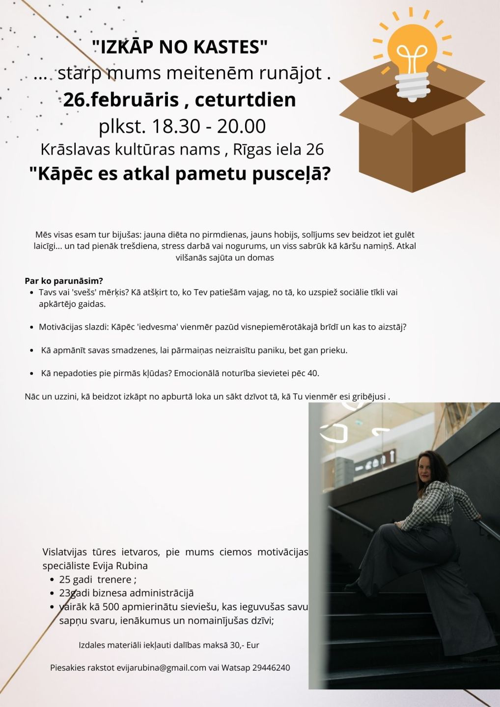 Pasākuma "Izkāp no kastes " organizators: Evija Rubina
