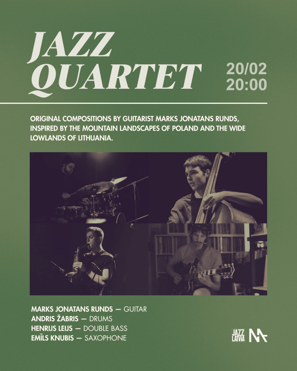 20. februārī uz MASA skatuves uzstāsies džeza kvartets, kas lielākoties apvieno Liepājas mūziķus. Programmā skanēs ģitārista Marka Jonatana Runda oriģinālkompozīcijas, tapušas, iedvesmojoties no Polijas kalnu ainavām un Lietuvas plašajām lejām. Līdzās autor­mūzikai koncertā izskanēs arī džeza tēmas no John Coltrane, George Shearing un citu džeza mūziķu repertuāra, veidojot daudzveidīgu programmu. Kvarteta skanējumu raksturo kolektīva mijiedarbība, niansēta dinamika un mūsdienīga skatījums uz džeza tradīcijām.