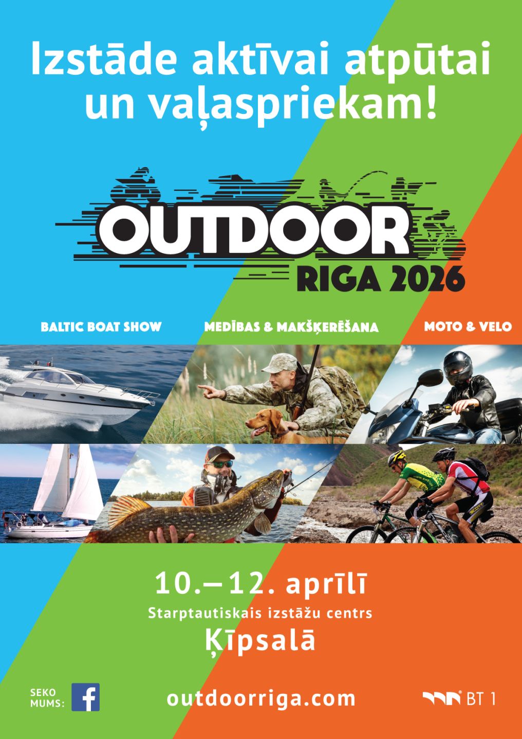 Izstāde “OUTDOOR RIGA 2026” popularizē aktīvo atpūtu un vaļaspriekus, zem viena zīmola apvienojot starptautisko laivu un jahtu izstādi “Baltic Boat Show”, starptautisko medību un makšķerēšanas piederumu un aksesuāru izstādi “Medības & makšķerēšana” un motociklu, velosipēdu un dzīvesstila izstādi “Moto & velo”.