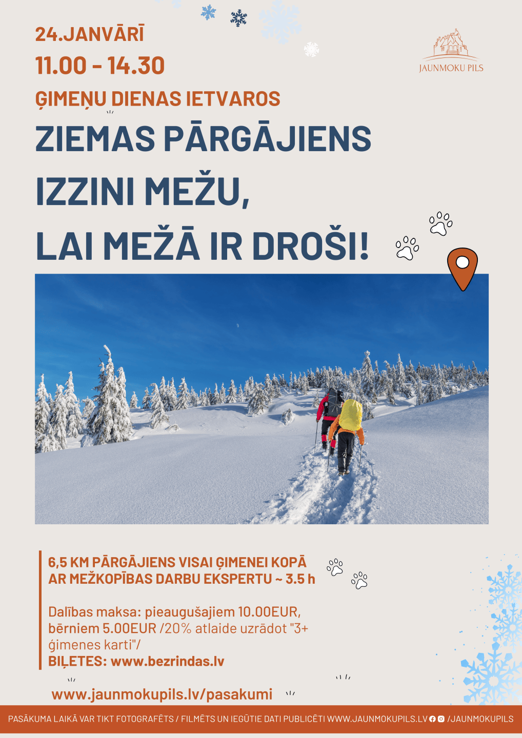 24.janvārī plkst. 11.00 Jaunmoku pils aicina uz Ziemas pārgājienu “Izzini mežu, lai mežā ir droši!” , kas notiks Ģimeņu dienu ietvarā pils apkārtnes mežā.