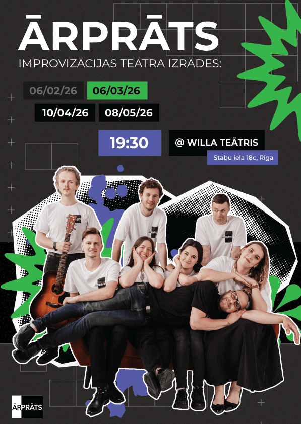 Improvizatoru apvienība "ĀrprāTS" ar vairāk nekā 10 gadu pieredzi uz skatuves piedāvā aizraujošu teātra pieredzi.