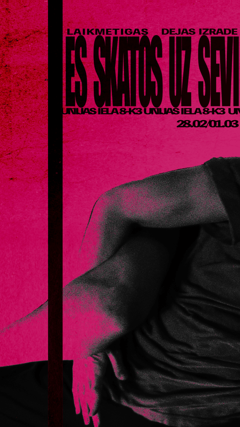 Klasiskā baletā nebalstīta laikmetīgās dejas izrāde  “Es skatos uz sevi” apskata trauksmes radītās grūtības būt klātesošam, caur fiziskām idejām pētot trauksmaino stāvokli. Izrādes dejotāji šo izaicinājumu izjūt ar savstarpējām attiecībām, kas aicina nepadoties pirmajai reakcijai, pieņemt notiekošo un veikt darbības, kad tās tiek pieprasītas, kamēr skatītājs tiek aicināts būt klātesošs jau nonākot izrādes norises vietā.