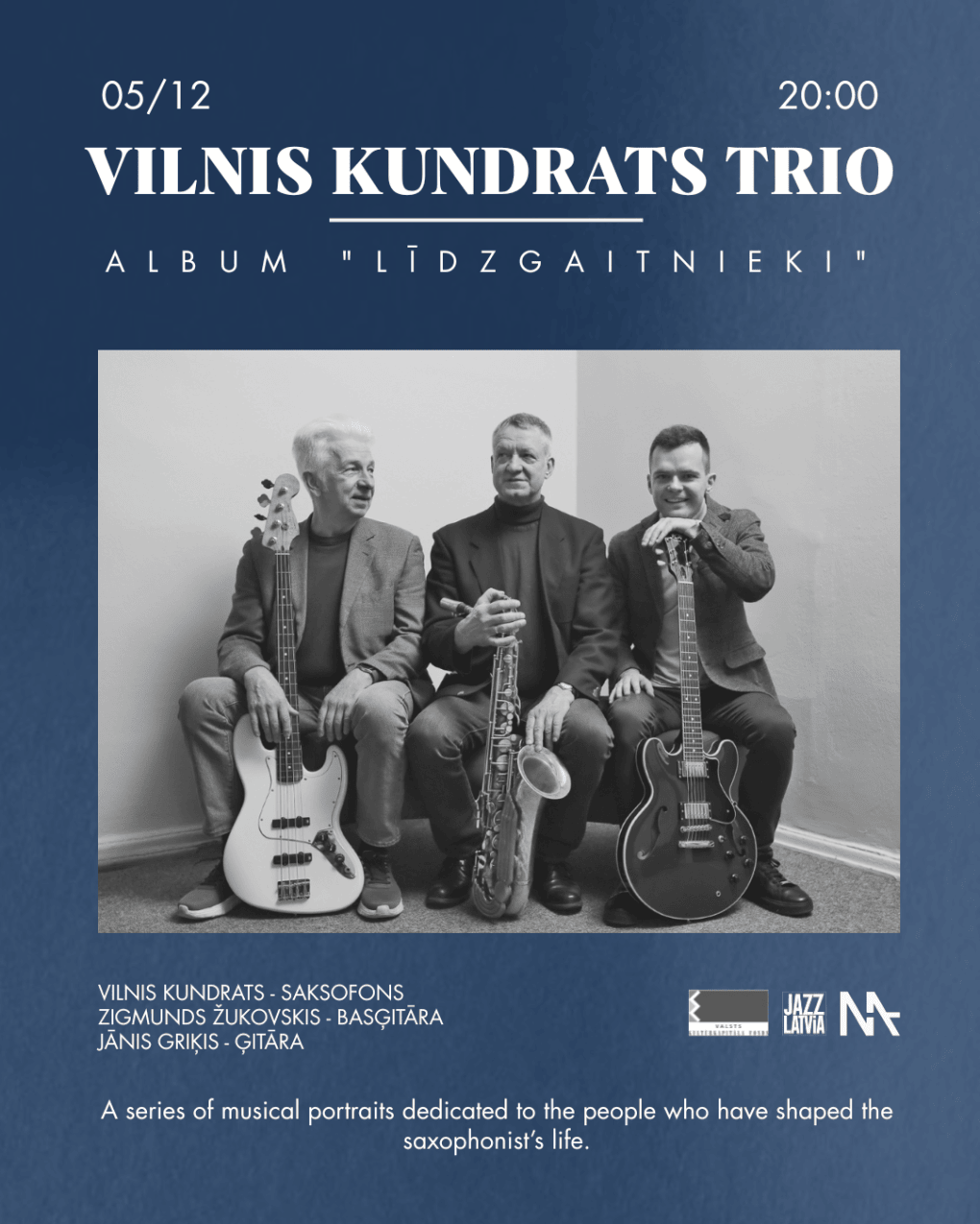 5 декабря в джаз-клубе MASA прозвучит программа «Līdzgaitnieki» в исполнении трио саксофониста Вильниса Кундратса — личная и лиричная музыкальная история.