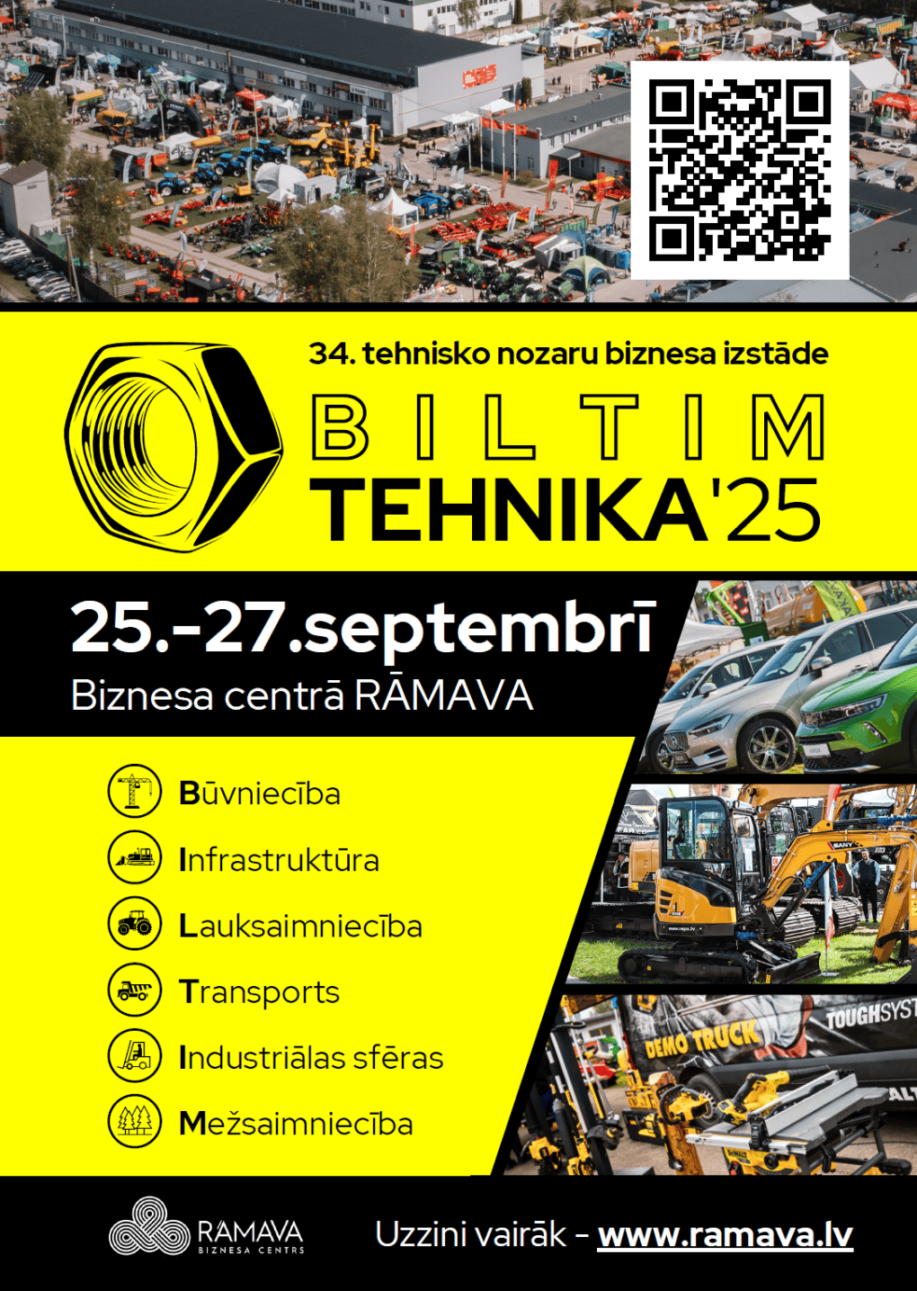 Бизнес-выставка технических отраслей «BILTIM TEHNIKA 2025» пройдёт с 25 по 27 сентября в бизнес-центре RĀMAVA в Валдлау́чи (сразу за Южным мостом, всего в 15 минутах езды от центра Риги).